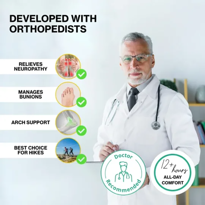 Allows natural foot movement, reduces pressure and prevents blisters during long-term wear.